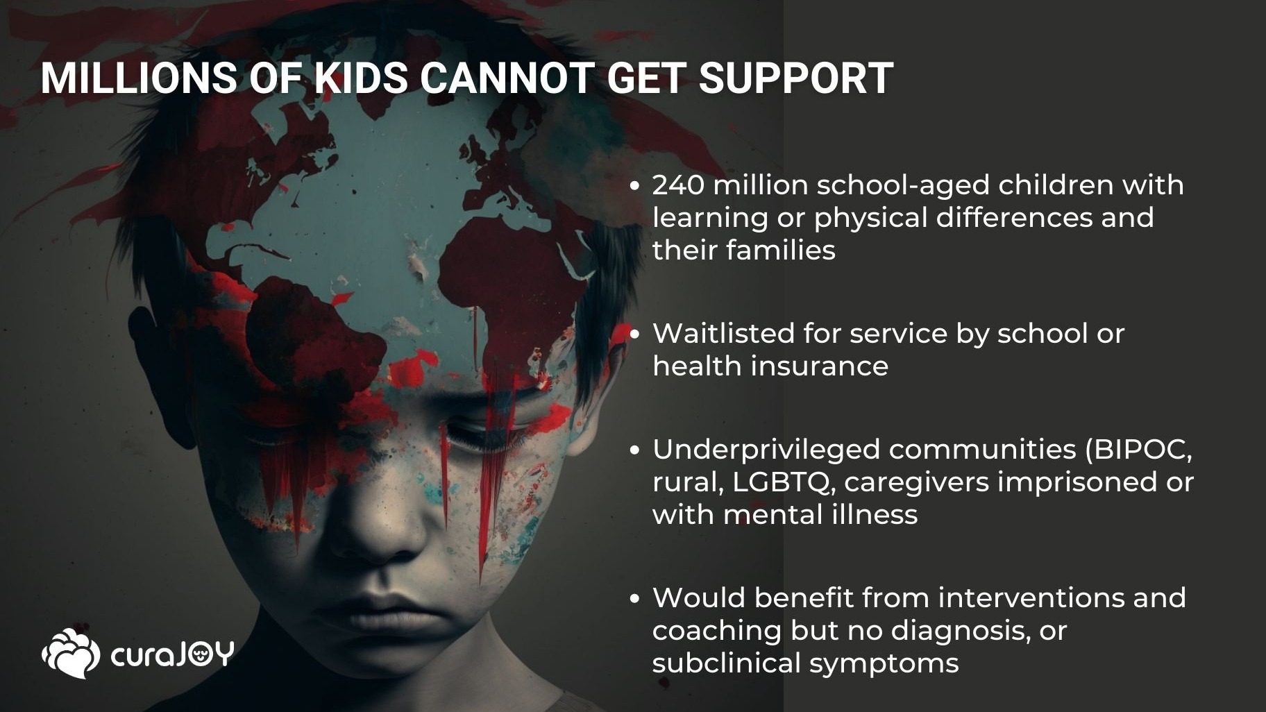 To say that the pandemic did a number on many families is an understatement. More than 55% of children reported being emotionally abused during the pandemic, and teen suicide rates have risen to historic highs since, says curaJOY. The mental health crisis has disproportionately affected neurodivergent children and children of color, as behavioral healthcare inequity often bars members of these demographics from accessing the care that they need.
