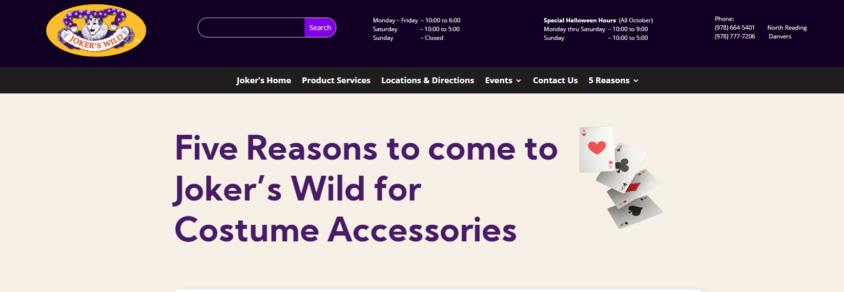 The Joker's Wild are the Auburndale, MA, costume experts you can count on - visit their shop today for their wide range of products!