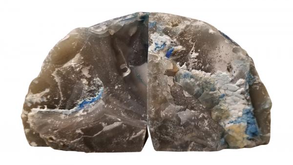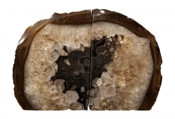 Enchanted Dwelling offers a set of high-quality Brazilian agate decorations, including a pair of bookends, four large stone coasters, wind chimes, a microfiber polishing cloth and two mugs.
