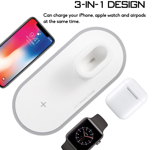 All the details you need can be found at: https://hankwashington.com/products/gadget-hub-3-in-1-wireless-charger-stand