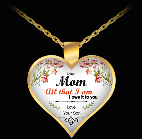 The necklace will make an ideal present that your mother can keep and remember for many years. Its heart-shaped pendant conveys the words: “Dear Mom, all that I am I owe it to you, Love Your Son.” As such, it enables you to share a symbol of your emotional connection with your mother without struggling to put the feeling into words yourself!