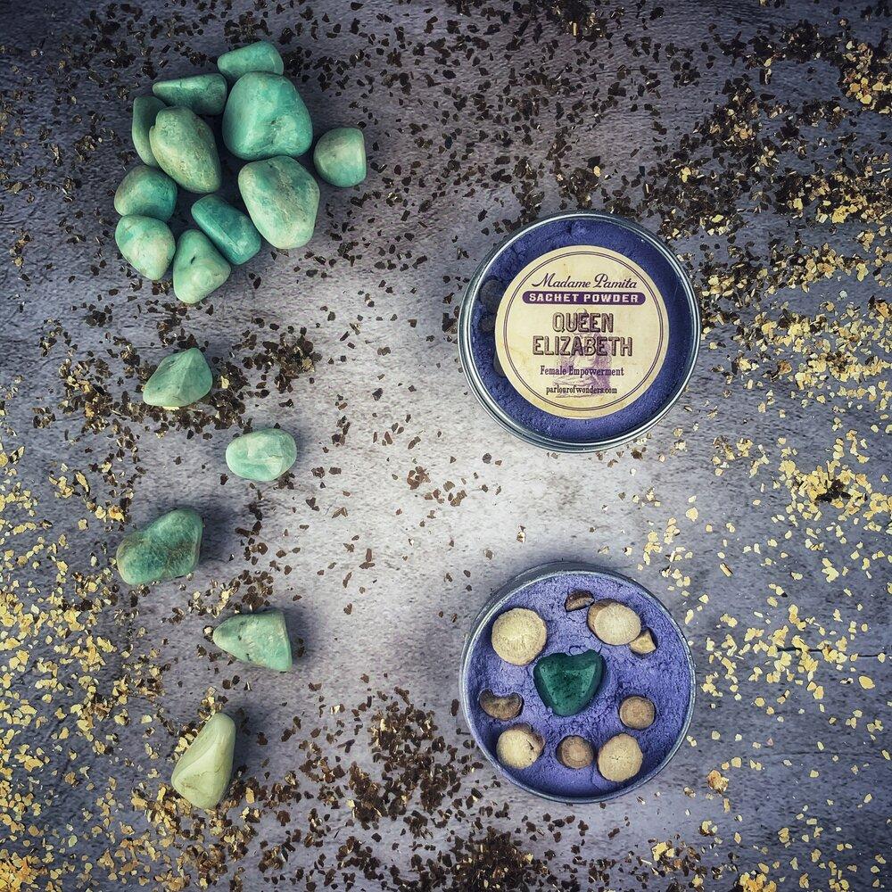 Their scented powders are made according to a unique proprietary formula from all-natural botanical ingredients using a skin-safe cornstarch base. Parlour of Wonders’ founder, Madame Pamita, handcrafts the floral perfumed powders in their LA studio using fragrant and spiritually potent essential oils.