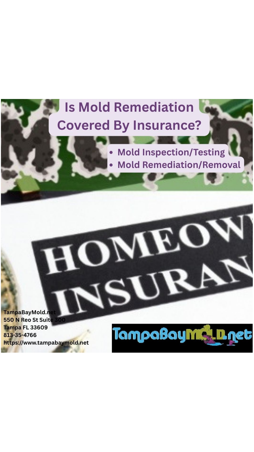 Contact for mold remediation and mold inspection services in the Tampa Bay area.