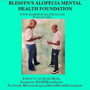 Blessyns Alopecia Mental Health Foundation is a nationally recognized non-profit organization with a mission to provide support for youth and adults with Alopecia and mental health challenges. They are also fully committed to helping those who have been bullied or are experiencing bullying as a result of their condition.