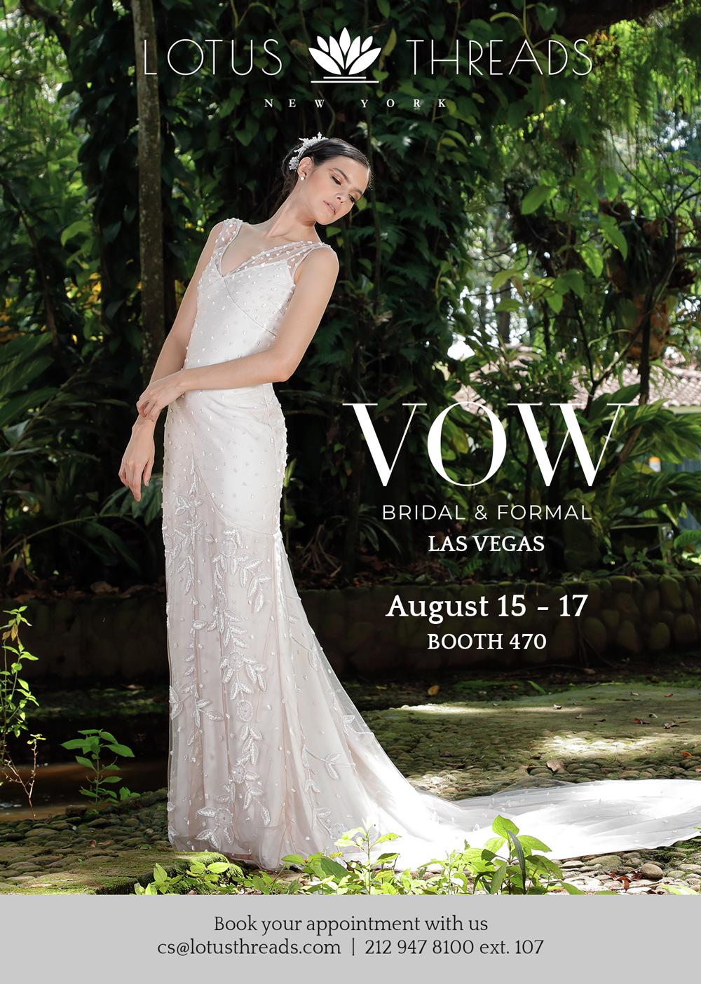 Calling all bridal stores and wholesale buyers! Non-traditional bridal house Lotus Threads (212-947-8100) is bringing its top new collections and bestselling wedding gowns to VOW Bridal & Formal in Las Vegas this August!