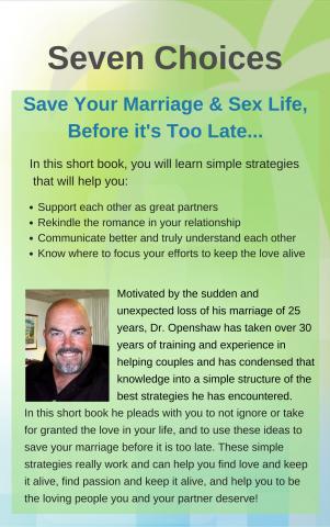 Dr Stephen Openshaw’s practical book, “Seven Choices: Save Your Marriage and Sex Life Before It’s Too Late…” teaches couples simple strategies that will help them: