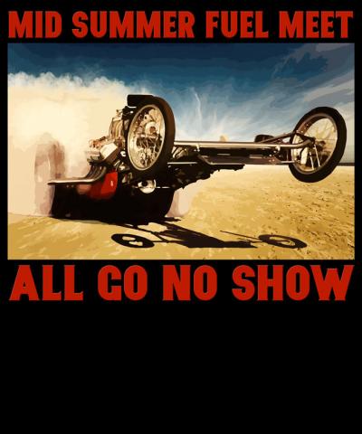 Meet the deadliest beast that took birth on the drag strips of the 1960s. Also known as Diggers, Slingshots or Rail, the Dragster cars have now been commemorated by a brand new T-shirt by Quarter Mile Addiction carrying the slogan, “Mid-Summer Fuel Meet, All Go No Show”.